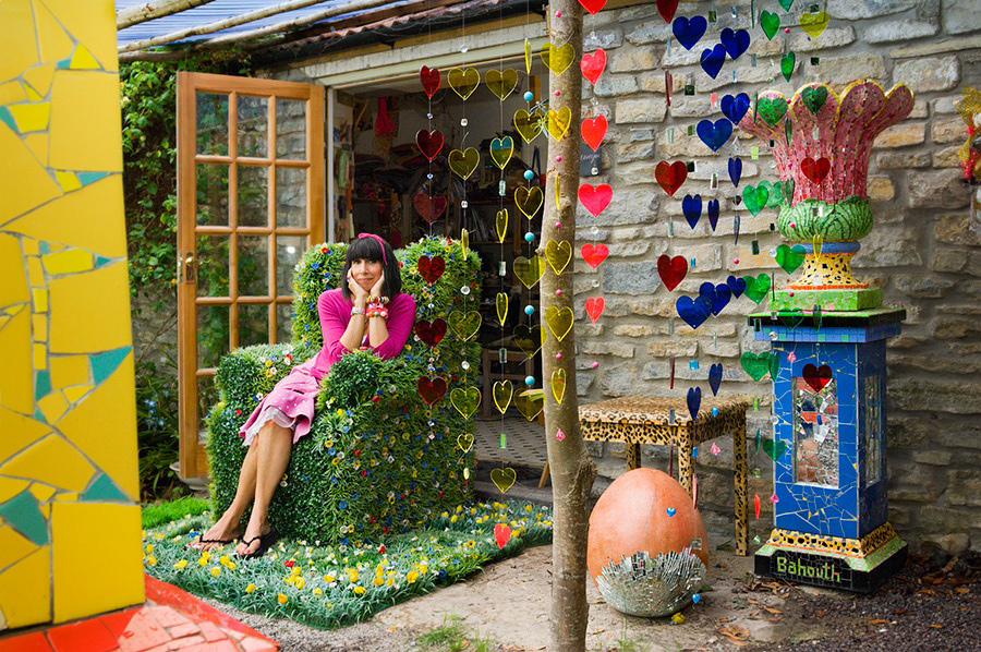 Between these two creative concerns, Bahouth has explored her interest in mosaics, using found material from nature as well as fragments of china.